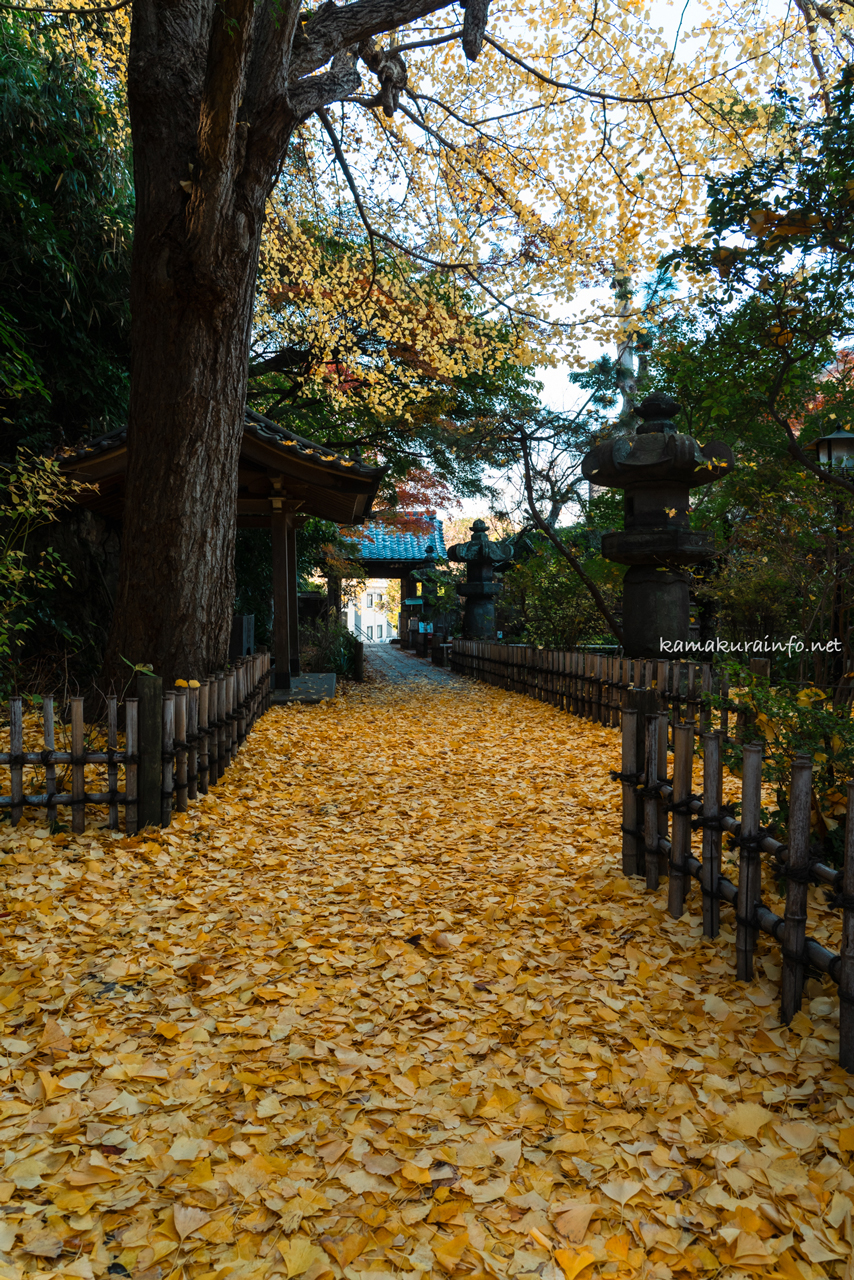 山門前の銀杏の落ち葉でできた絨毯