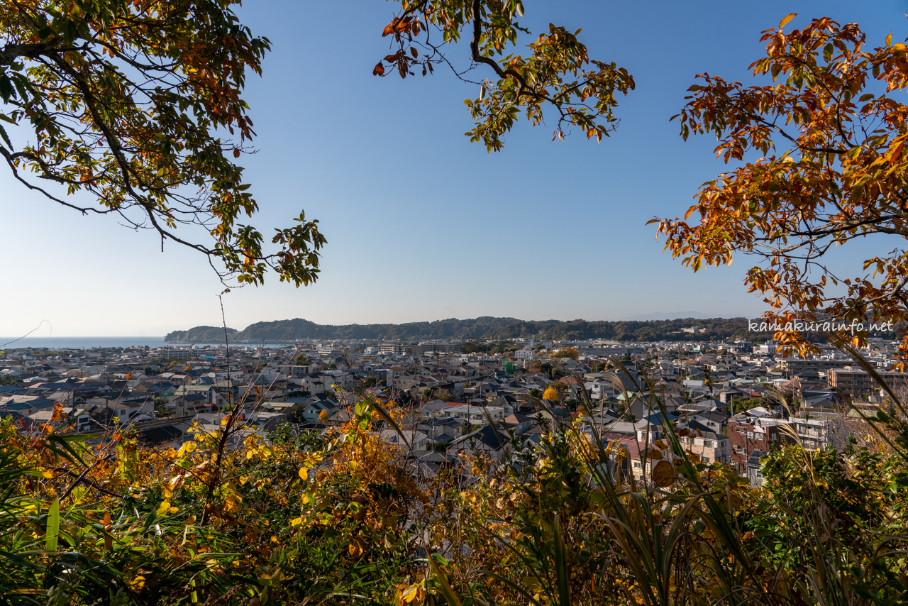 富士見台からの風景、鎌倉の街と海が見渡せます。空気の澄んでいる日は富士山も見ることができます。