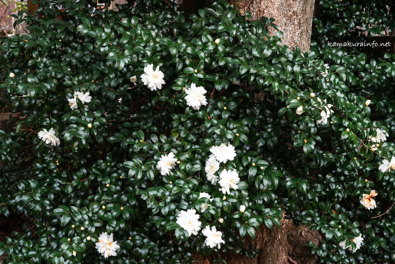 境内のサザンカは11月中旬ごろから咲き始め〜12月中旬まで見ることができます